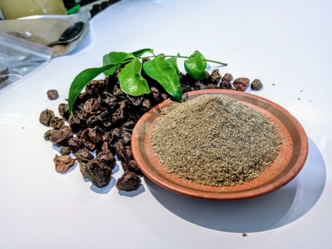 ( Lá móc mật khô dùng công nghệ sấy lạnh nên vẫn giữ được màu xanh đẹp và hương thơm của lá )- Gói Gia vị tổng hợp Vịt, Heo, Gà 250g dùng được 50 con vịt giá 100k